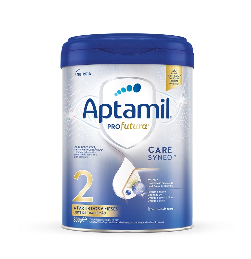 Nota importante: O leite materno é a nutrição ideal para o bebé. Consulte sempre o Profissional de Saúde sobre a melhor nutrição do bebé. Aptamil® Profutura® 2 é adequado para lactentes com mais de 6 meses, como parte da dieta diversificada: não usar como substituto do leite materno até aos 6 meses de idade.